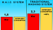 | Therefore, M.A.I.C. 1 not only takes into consideration economic savings but health as well, in this case the health of each and everyone of us. Not notably reduce detergent use, as M.A.I.C. 1 , permits, means to reduce the quantity of pollutants, such as detergents discharged in the environment. It was not a coincidence that a special "trade mark" was created, to testify to the important and constant committment towards respecting and protecting the environment. | |